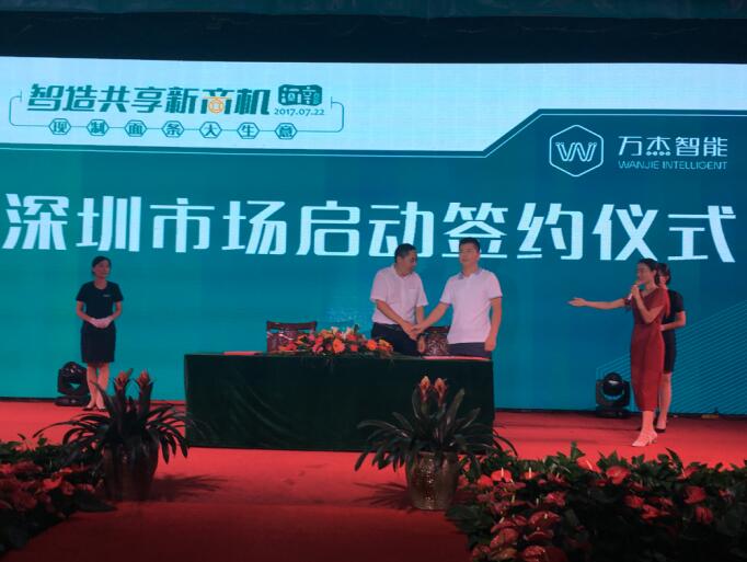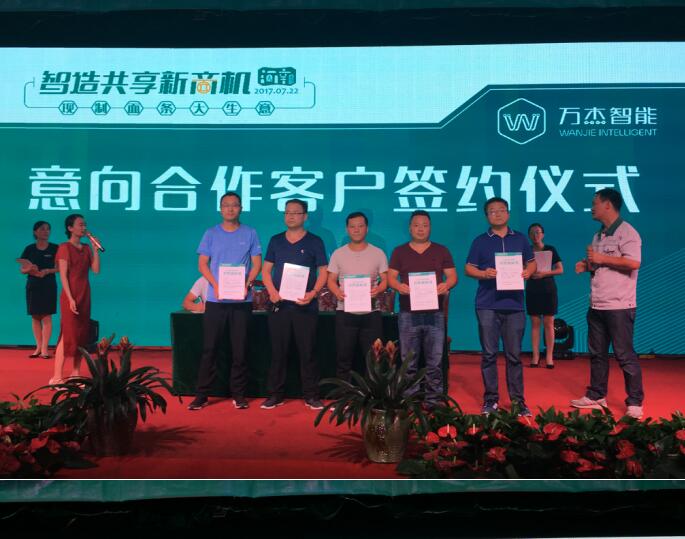 晚宴即將開始時,仍然有很多意向合伙人想要加入萬杰智能鮮面機(jī)項目中來,會務(wù)組因此臨時調(diào)整會議流程,推遲晚宴開始時間,為意向合伙人留出更多簽約時間,最終,萬杰智能成功與30余位意向合伙人簽署了意向合作書。 萬杰智能與中視能量(央視一級服務(wù)商)簽訂戰(zhàn)略合作協(xié)議 萬杰智能深圳市場正式啟動儀式 城市合伙人簽約儀式