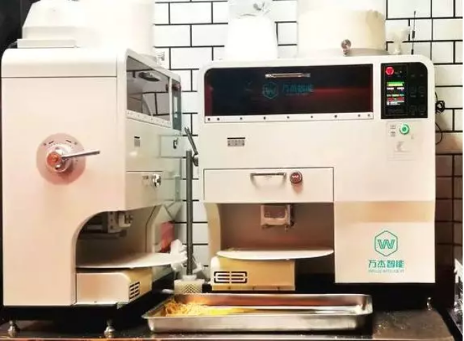 而在“咱+面館”的店內(nèi)共擺放了2臺智能鮮面機設(shè)備,一臺留在前廳,一臺放到后廚,只需要放好水和干面粉,輕輕按下鍵即可一鍵成面,顧客可以清楚的看到整個做面過程,從而打消顧客心中顧慮。