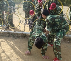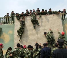 畢業(yè)墻:每個(gè)人都要翻越一堵大約4米且垂直的圍墻,這又是一個(gè)必須依靠集體的力量才能完成的項(xiàng)目。剛開(kāi)始,大家都認(rèn)為這是很難完成而且比較危險(xiǎn)的任務(wù),估計(jì)需要半個(gè)小時(shí),甚至一個(gè)小時(shí)才能全部通過(guò)。 通過(guò)集思廣益,我們擬定了計(jì)劃,采用“疊人墻”的方法,讓身強(qiáng)力壯的隊(duì)員作為底座,先由兩三位隊(duì)員踩在他們的肩膀,大家?jiàn)^力將他們先托上高墻,然后他們?cè)谏厦娼討?yīng),其他同伴踩著底座同伴的肩膀,一個(gè)一個(gè)成功地翻越了高墻。整個(gè)過(guò)程歷時(shí)不過(guò)5分鐘,活動(dòng)結(jié)束后,所有隊(duì)員都為自己和團(tuán)隊(duì)的精彩表現(xiàn)鼓掌、歡呼,那一刻的場(chǎng)面激動(dòng)人心! 此項(xiàng)目心得體會(huì):首先要感謝作為底座的幾位隊(duì)友,十幾個(gè)同伴踩在他們的肩膀上,汗水、沙土粘滿了衣服,肩膀被踩出紅紅的血痕。他們的奉獻(xiàn)和付出,換來(lái)了團(tuán)隊(duì)的成功。無(wú)論在工作還是生活中,只有放下自私、愿意付出、為別人著想、才能成就自己,完成目標(biāo)。